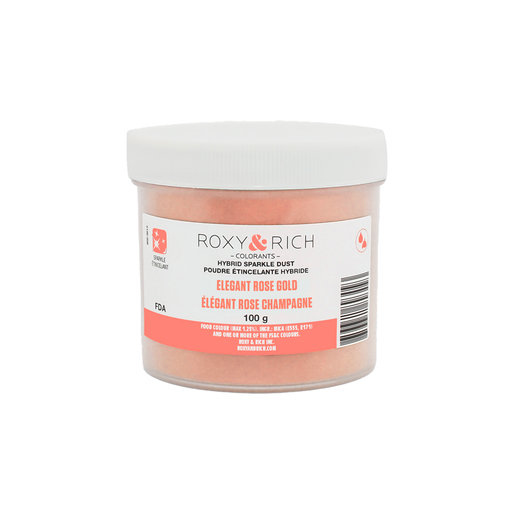 La gamme de Poudres étincelantes hybrides offre un choix de 65 couleurs, dont 9 présentent un fini perlé, et ne contiennent pas d’oxyde de fer (E172). La couleur est obtenue en ajoutant une fine couche de colorant alimentaire sur les particules de mica. Cette façon de faire permet une brillance exceptionnelle qui surpasse les autres poudres étincelantes offertes sur le marché. Les Poudres étincelantes hybrides s’utilisent aussi bien à sec, qu’avec de l’eau, de l’alcool ou de l’extrait de citron. Les mêmes couleurs sont également offertes dans la gamme de Poudres lustrées hybrides pour des effets différents.