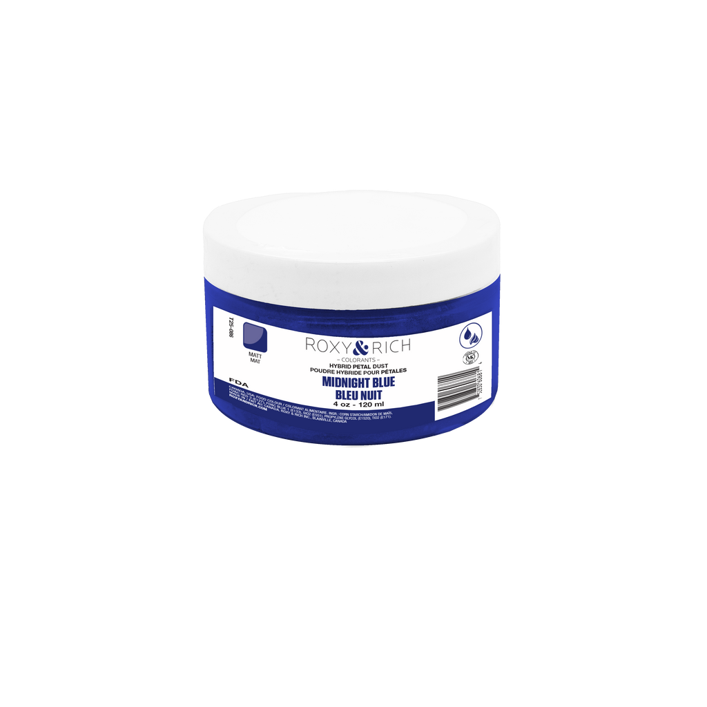 Solubles à l’eau, les Poudres hybrides pour pétales sont conçues pour colorer à sec à l’aide d’un pinceau, mais elles peuvent aussi colorer la plupart des produits alimentaires. Elles contiennent des microcapsules de colorant liquide qui s’activent lorsqu’elles sont brossées.