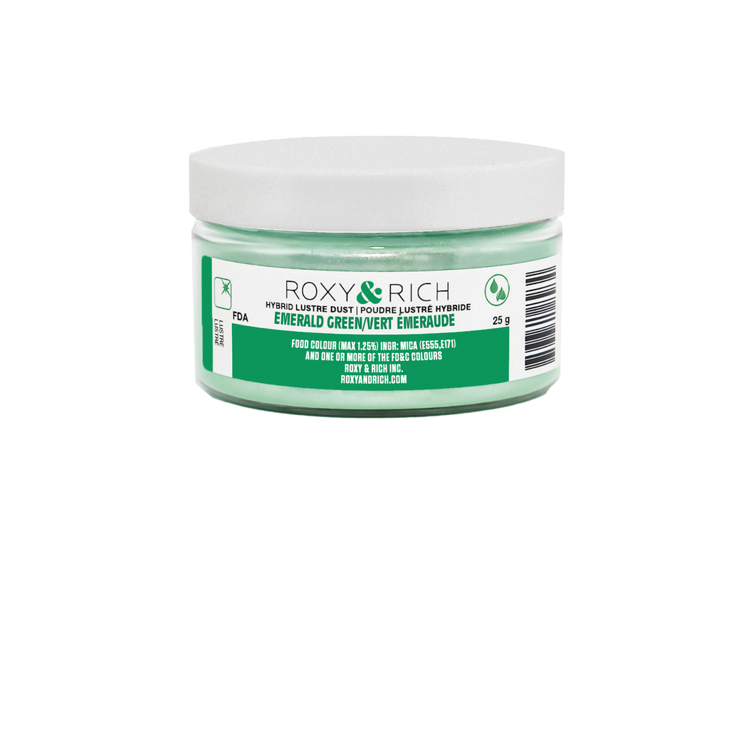 La couleur est obtenue en ajoutant une fine couche de colorant alimentaire sur les particules de mica. Cette façon de faire permet une brillance exceptionnelle qui surpasse les autres poudres lustrées offertes sur le marché. Les Poudres lustrées hybrides s’utilisent aussi bien à sec, qu’avec de l’eau, de l’alcool ou de l’extrait de citron.