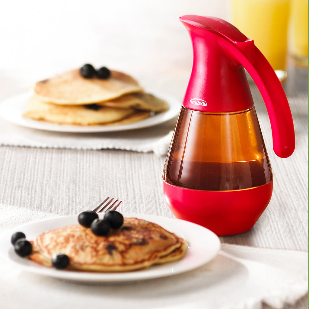 Notre verseur est conçu de façon si ingénieuse qu'il vous inspirera de nouvelles façons d'intégrer le sirop d'érable dans votre cuisine! Avec une capacité de 540 ml de liquide, il est parfait pour les brunchs entre amis. Sans métal, il peut aussi être réchauffé aux micro-ondes; vous pourrez donc verser du sirop sur vos crêpes sans craindre de les refroidir! De plus, il se désassemble facilement pour un nettoyage rapide.