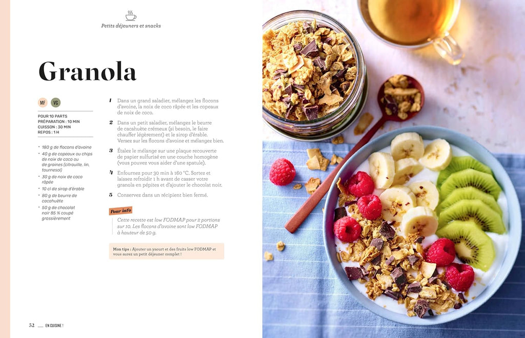 - Une centaine de recettes et alternatives certifiées low FODMAP, faciles à faire et savoureuses, adaptées aux personnes souffrant du SII, ainsi qu’à celles sujettes aux problèmes digestifs.