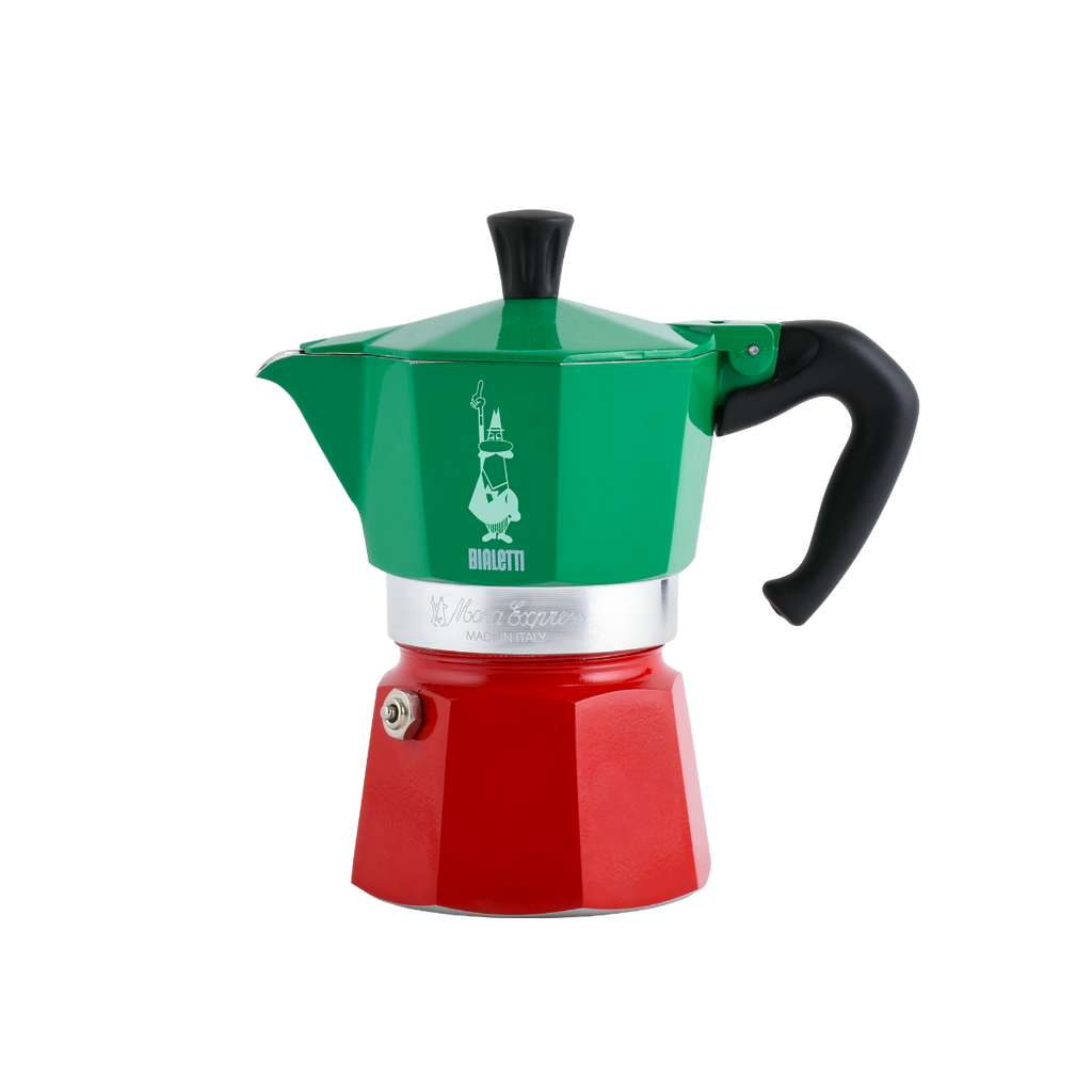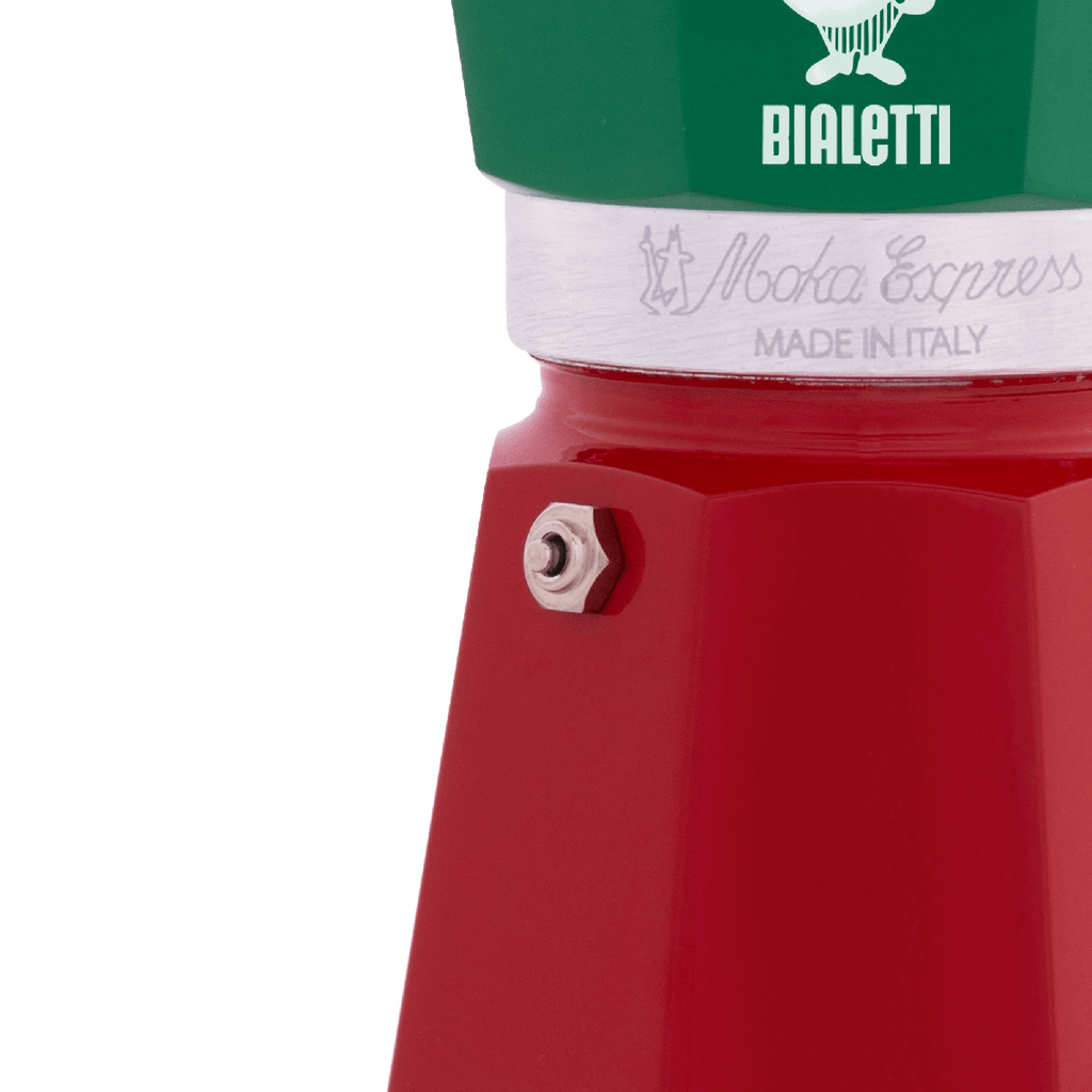 Depuis 1933, le Bialetti Moka Express est un symbole incontesté de la qualité Made in Italy, et le Moka Express Tricolore veut célébrer (également à travers ses couleurs) le rituel traditionnel italien de la préparation du bon café. Ce qui rend le Moka Express Tricolore encore plus exclusif, c'est bien sûr l'emblématique Homme à la moustache, ainsi que les couleurs Made in Italy qui célèbrent cette icône internationale de la préparation du café.