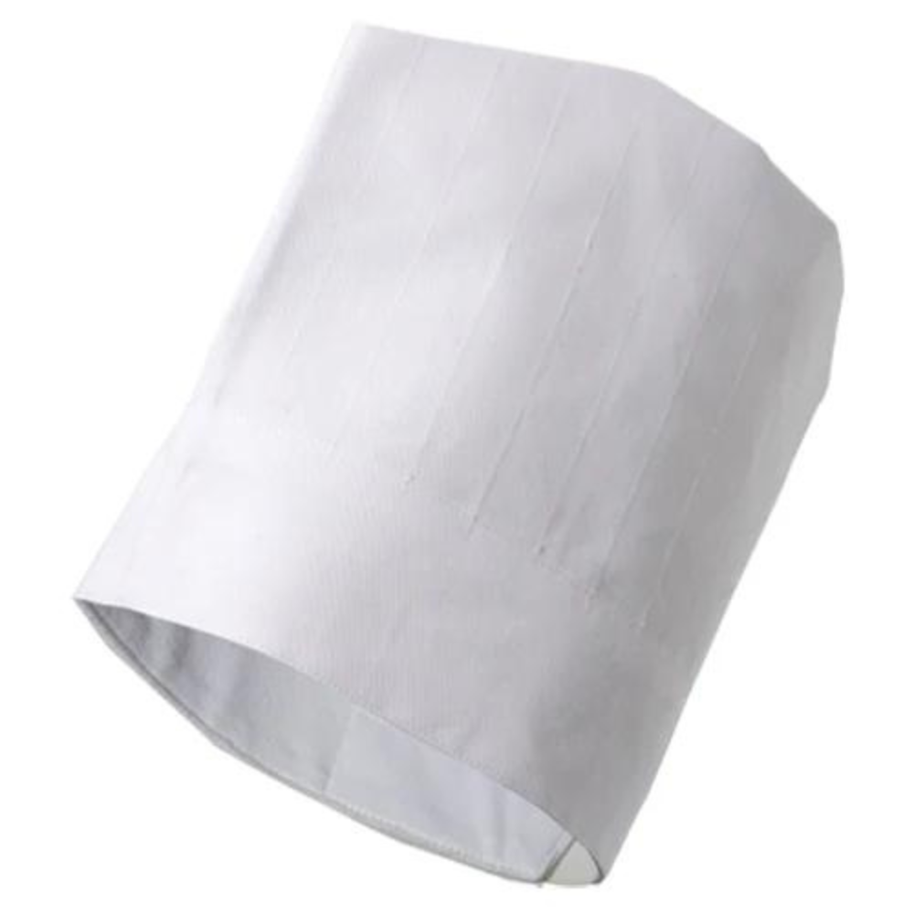 Toque de cuisine en tissu lavable. Intérieur du tour de tête doublé de DRY UP pour éviter la transpiration. Réglage par élastique et velcro.
