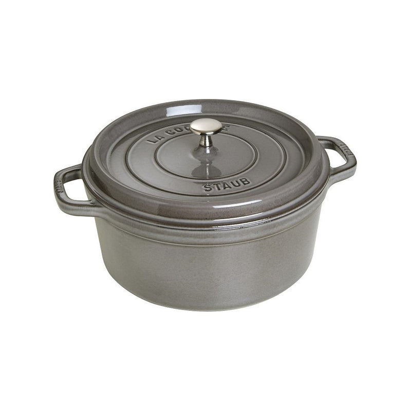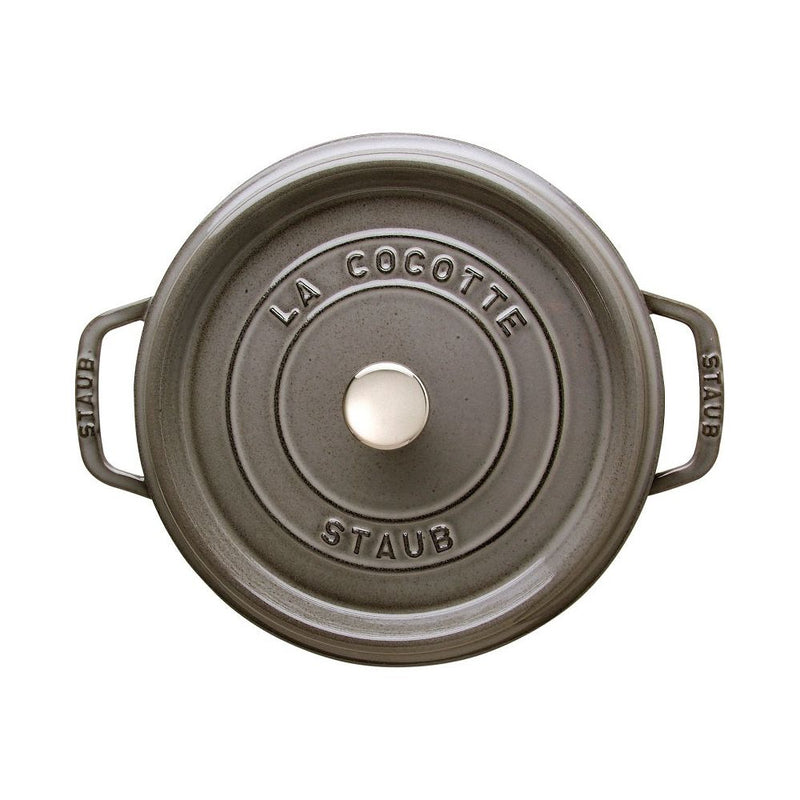 Cette cocotte ronde en fonte émaillée STAUB Grise de 24cm est idéale pour 4 personnes, pour préparer des plats mijotés, des rôtis, de la volaille et même du pain ! Compatible tous feux et four, elle peut également s’utiliser sur induction.
