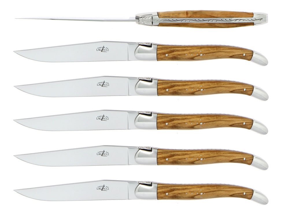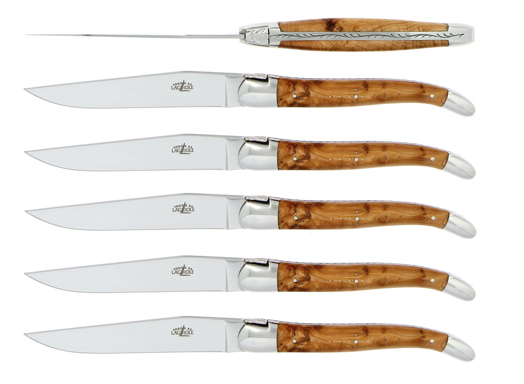Coffret de 6 couteaux de table, manche en bois, mitre inox brillant – Laguiole