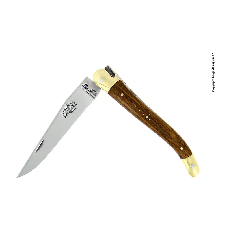 Couteau Forge de Laguiole, composé d'une lame en acier Français. Il dispose de deux mitres en Laiton qui protégerons les extrémités du manche d'un usage quotidien.