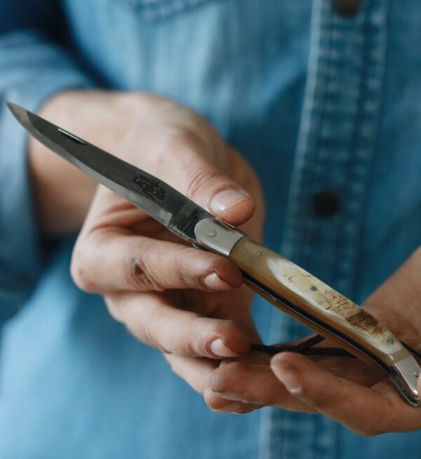 Couteau pliant 11 cm, mitre inox, Pointe de corne Aubrac – Laguiole