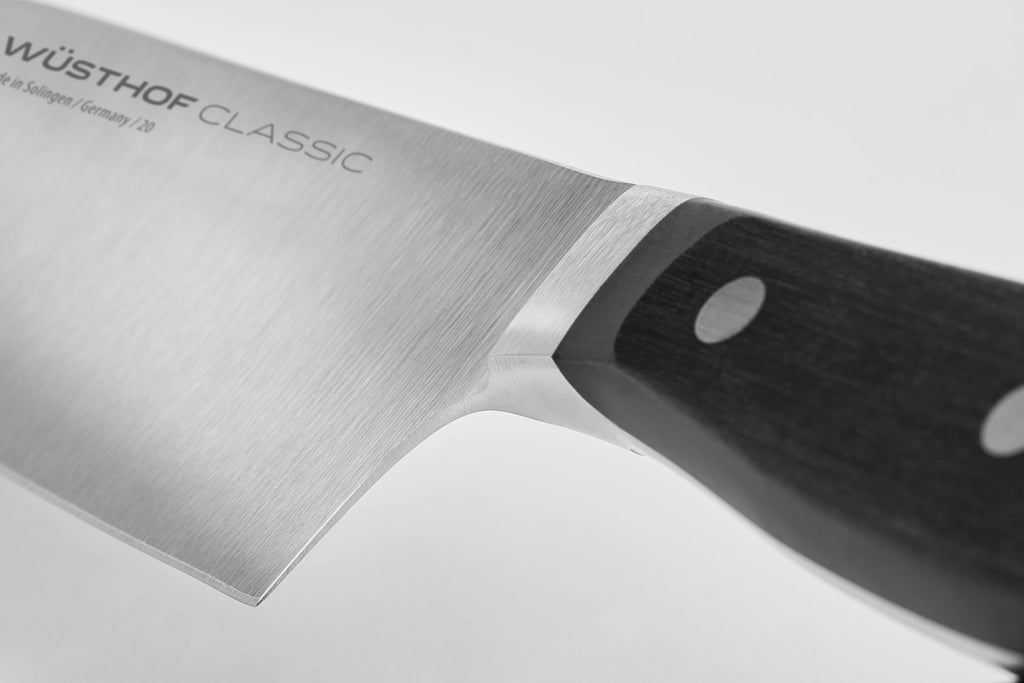 Le couteau utilitaire asiatique classique WÜSTHOF est doté d'une lame droite incurvée unique, lui permettant d'être utilisé aussi bien comme mini-couteau de chef que comme couteau d'office. Ce couteau est parfaitement conçu pour les coupes à ras de pierre, nécessitant un poids modéré et un équilibre précis, que pour les travaux manuels plus précis, exigeant un tranchant impeccable et une agilité exceptionnelle. De taille et de forme idéales pour de nombreuses préparations culinaires, le couteau utilitaire asiatique coupe, tranche ou découpe en dés sans effort une variété d'ingrédients, notamment des fruits, des légumes et des fromages de petite et moyenne taille. Il peut également être utilisé pour parer les viandes et la volaille.