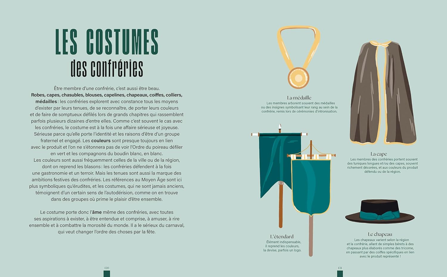 Un produit et un terroir se tiennent par la main au sein de chaque confrérie, vaillamment dressée contre l'uniformisation du goût et la perte des savoir-faire. Nous en avons réuni plus de 200 autour d'un banquet gargantuesque et merveilleux. Elles viennent y présenter, avec toute leur passion, un menu d'ogre, de l'apéro au digestif. Vous croiserez ici le meilleur de l'andouillette, de l'olive, du cresson, de la moule, du boudin, de la sole, des champignons, de la chouquette, et de bien d'autres merveilles du patrimoine culinaire.
