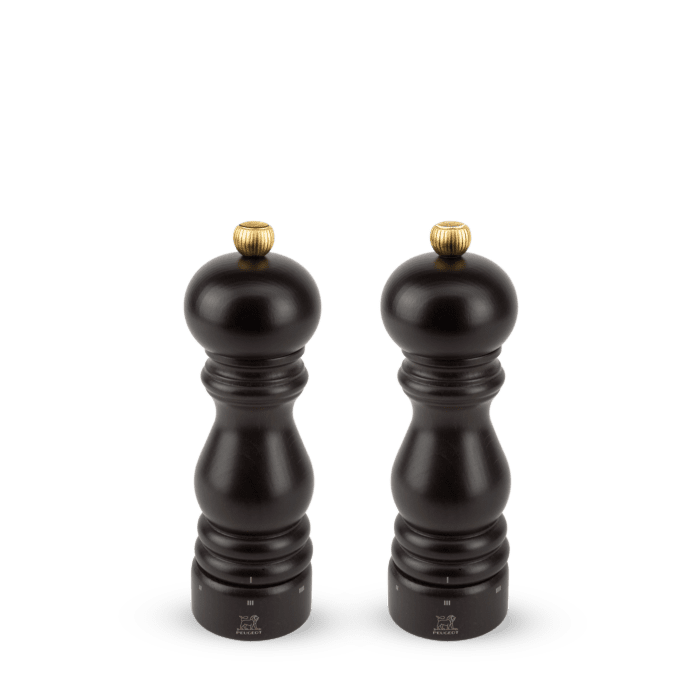 Le duo de moulins à sel et à poivre Paris u’Select, dans une finition chocolat, avec un design intemporel et un toucher velouté, est un ensemble essentiel pour la table et la cuisine.