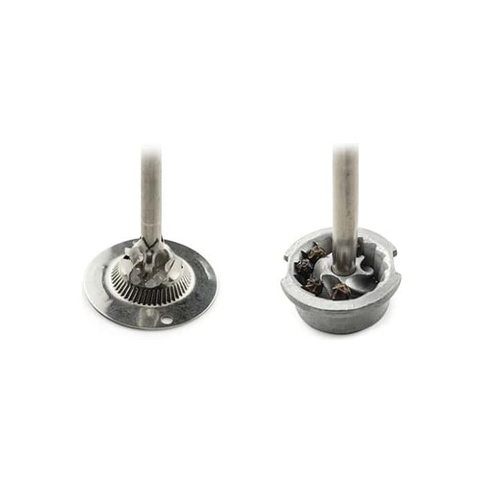 Un plaisir pour les yeux, cet ensemble offre une satisfaction complète, utilisation après utilisation. Les moulins à sel et à poivre sont fabriqués en bois de hêtre français durable et chacun dispose d'un mécanisme unique : l'un conçu spécifiquement pour moudre le sel de roche et l'autre pour les grains de poivre. Au sommet du moulin, les boutons sont imprimés avec l'emblème de la marque, la tête de lion, en blanc sur le moulin à sel et en noir sur le moulin à poivre, pour vous aider facilement à choisir votre épice préférée.