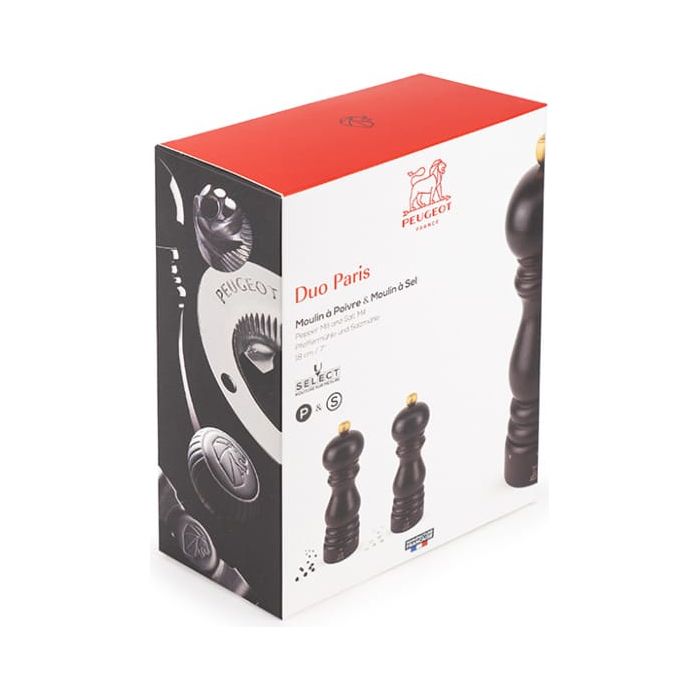 Fabriqués en France, les deux moulins sont équipés du système ingénieux de réglage de la mouture u’Select, breveté par Peugeot, qui vous permettra d'ajuster le système de mouture du sel et du poivre. Comme la chaleur et les arômes peuvent varier en fonction de la taille de la mouture que vous choisissez, le système u’Select deviendra un outil sérieux pour rehausser le goût de vos assaisonnements.