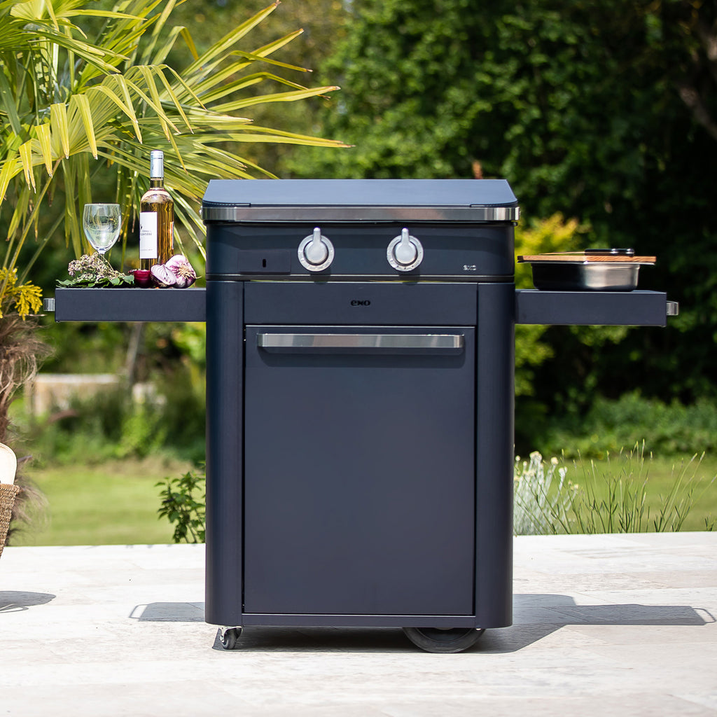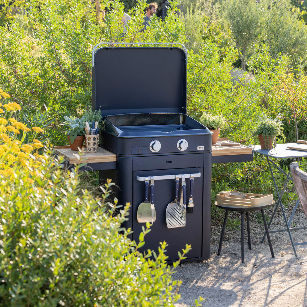 Eno - Ensemble Plancha 2 brûleurs avec couvercle et chariot ENOSIGN 65 - Bleu Navy