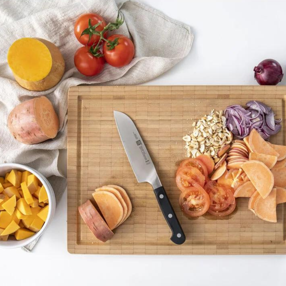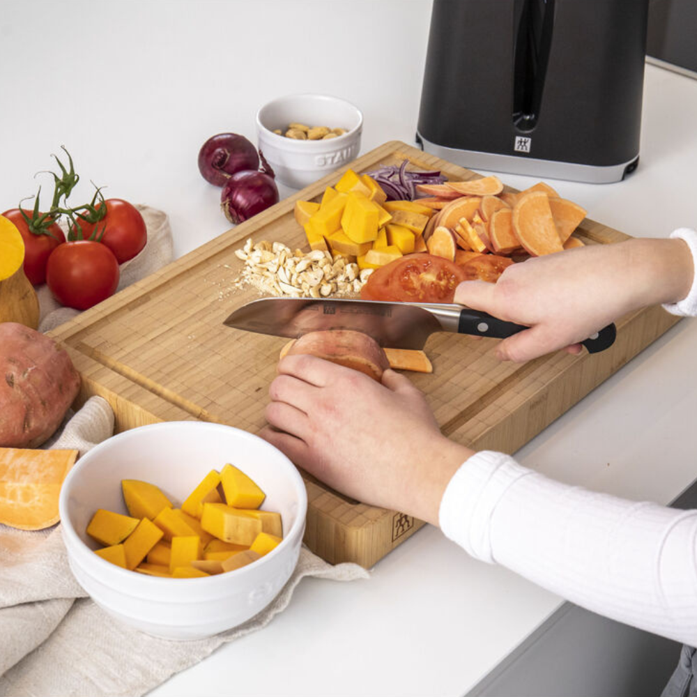 Le ZWILLING Pro est le couteau le plus convivial du marché. La forme unique de la lame et la mitre ergonomique sont le résultat de plus de 290 ans d'expérience dans la fabrication de couteaux et de l'étude rigoureuse de leur utilisation. Une mitre incurvée unique permet une prise en main professionnelle, avec le pouce et l'index sur la lame, pour une coupe sûre et moins de fatigue. La lame a été redessinée avec une courbe plus large à l'avant pour faciliter le mouvement de bascule de la coupe occidentale, tandis que l'arrière droit est idéal pour le mouvement de coupe asiatique. La lame peut être utilisée sur toute sa longueur lors de la coupe et peut être aiguisée de la mitre à la pointe. Conçu en Italie par Matteo Thun et fabriqué en Allemagne par ZWILLING J.A. Henckels, la société qui définit la norme en matière de coutellerie exceptionnelle dans le monde entier.