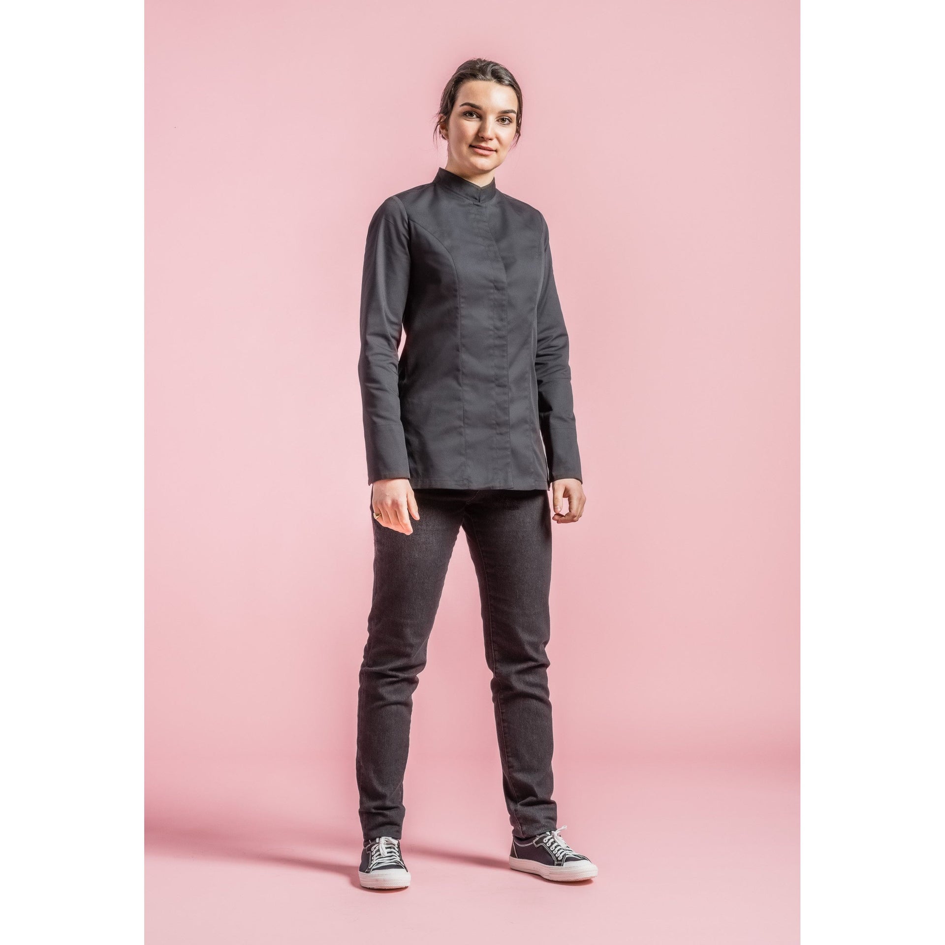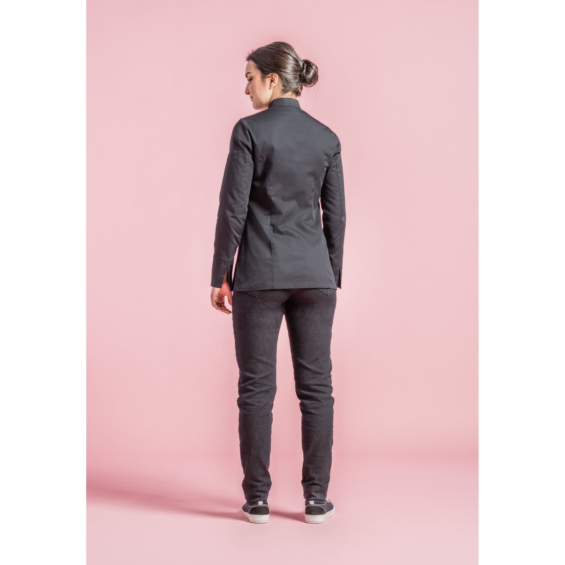 Veste de cuisine femme col officier. Pressions cachées. Fentes côtés.