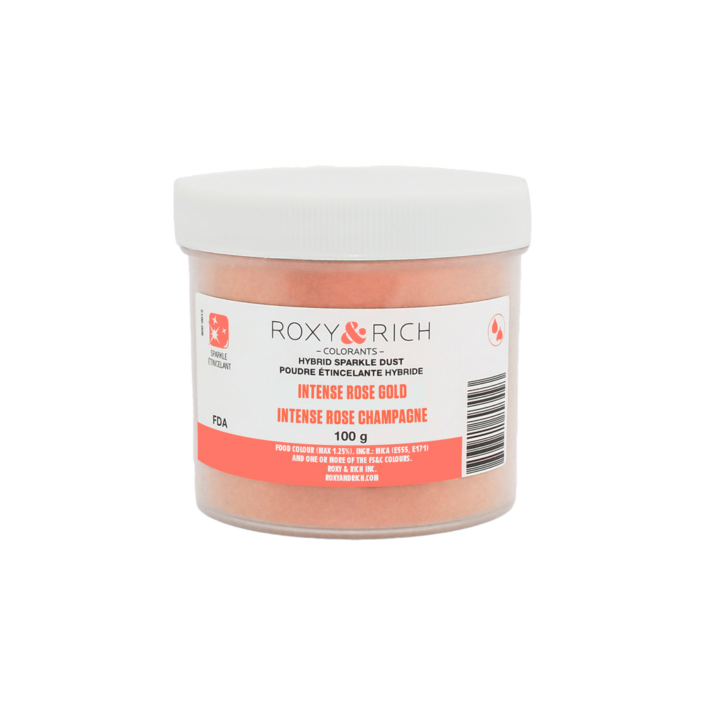 La gamme de Poudres étincelantes hybrides offre un choix de 65 couleurs, dont 9 présentent un fini perlé, et ne contiennent pas d’oxyde de fer (E172). La couleur est obtenue en ajoutant une fine couche de colorant alimentaire sur les particules de mica. Cette façon de faire permet une brillance exceptionnelle qui surpasse les autres poudres étincelantes offertes sur le marché. Les Poudres étincelantes hybrides s’utilisent aussi bien à sec, qu’avec de l’eau, de l’alcool ou de l’extrait de citron. Les mêmes couleurs sont également offertes dans la gamme de Poudres lustrées hybrides pour des effets différents.