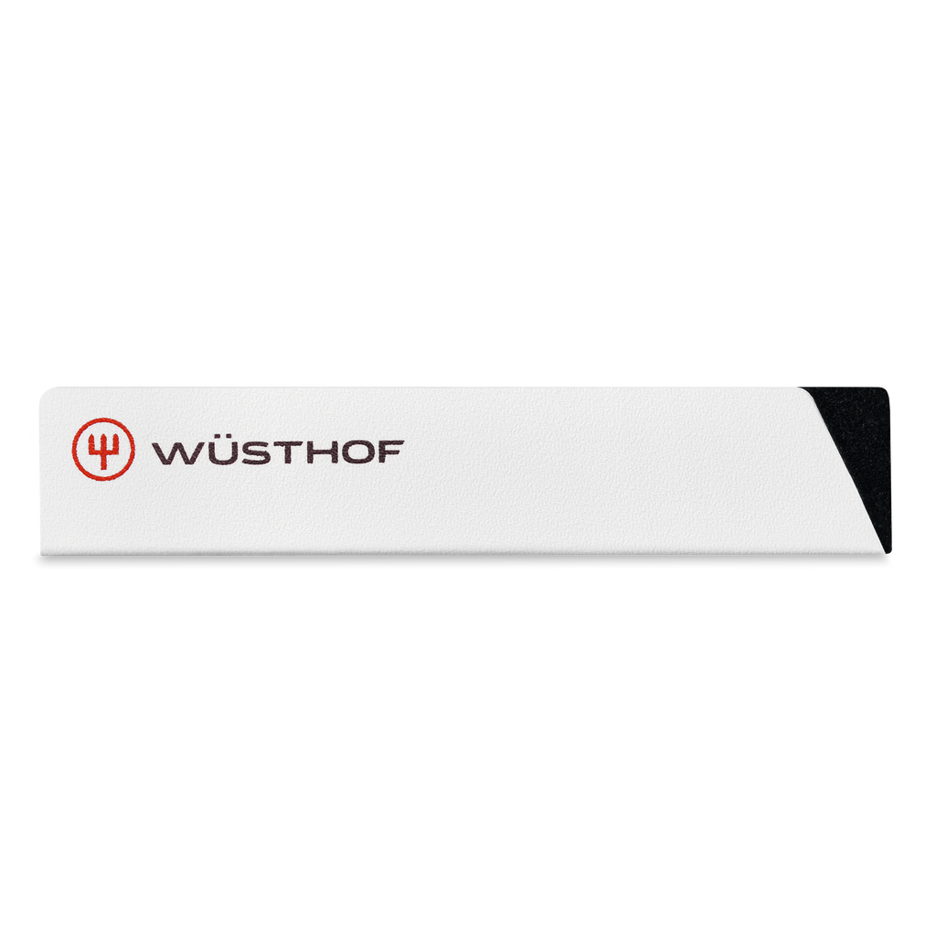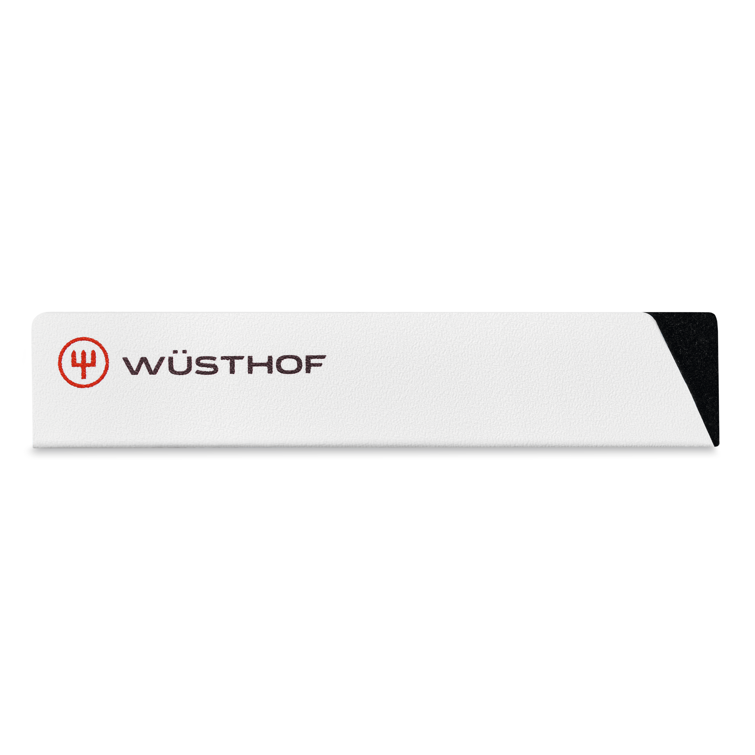 Les couteaux s'émoussent au fil du temps, non seulement à cause de leur utilisation, mais aussi à cause d'un stockage inapproprié. Ce protège lame empêche cet émoussement en protégeant le couteau et l'utilisateur. Une doublure en velours empêche la lame d'être rayée ou éraflée tout en minimisant le risque de blessure. Le protège lame WÜSTHOF peut également être utilisé dans des étuis et des trousses à couteaux.