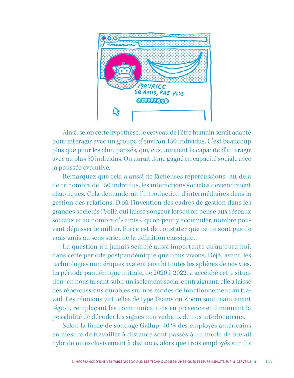 Passionné des méninges, le Dr Fortin part du neurone pour expliquer les trois concepts qui régissent la santé du cerveau : PRÉSERVER (sa mémoire, ses fonctions cognitives) ; PRÉVENIR (les impacts du vieillissement normal sur le cerveau) ; PROTÉGER (le cerveau des impacts physiques). L'auteur présente l'organisation générale du cerveau, puis décrit comment il évolue et ce qu'on considère comme un cerveau normal et un cerveau malade. Ensuite, il explique comment réduire les risques de maladie du cerveau et de déclin cognitif en fonction de thèmes-clés : système vasculaire, habitudes alimentaires, vie sociale, sommeil, engagement cognitif et traumatismes crâniens.