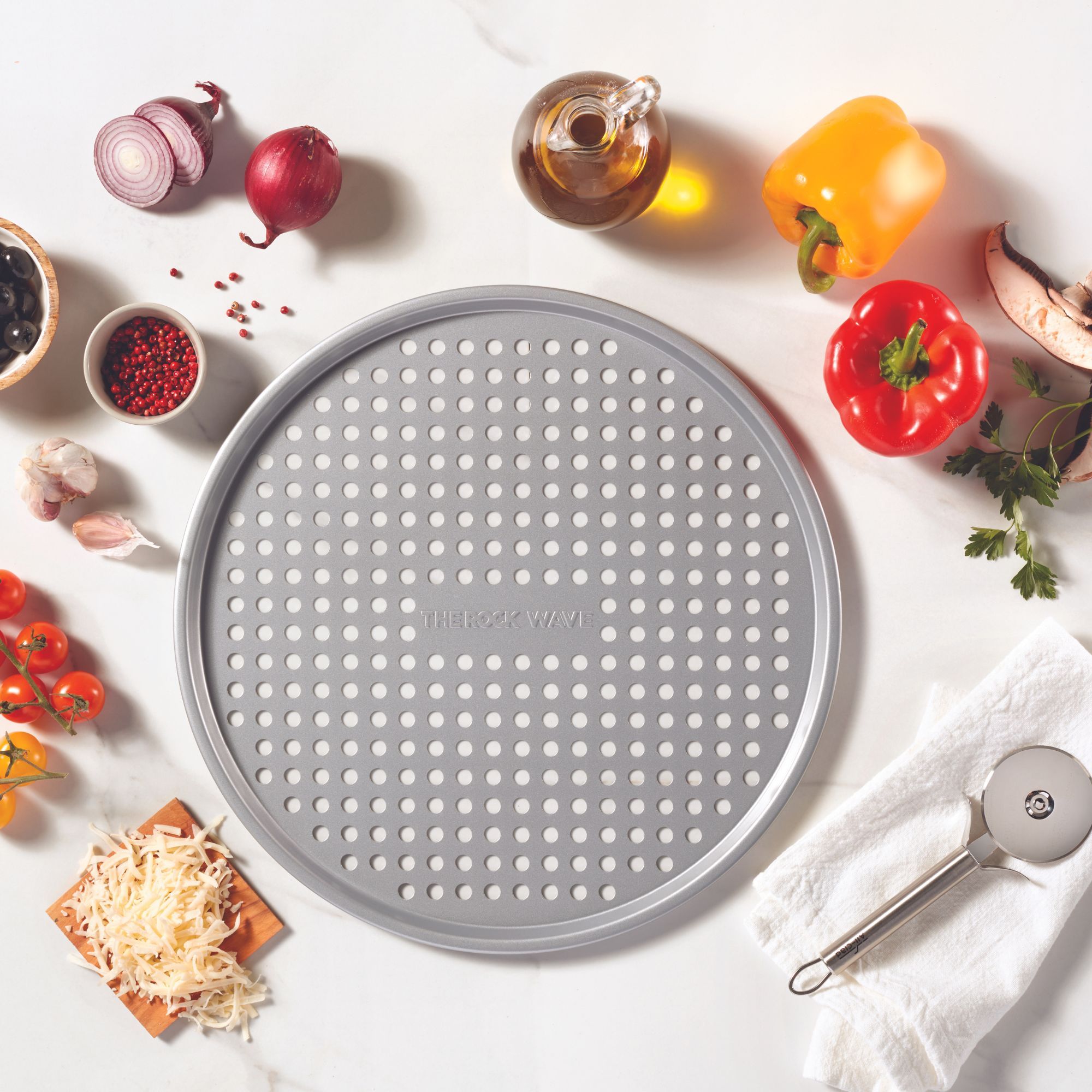 The ROCK WAVE plaque à pizza perforée antiadhésive de 37 cm (14.5")