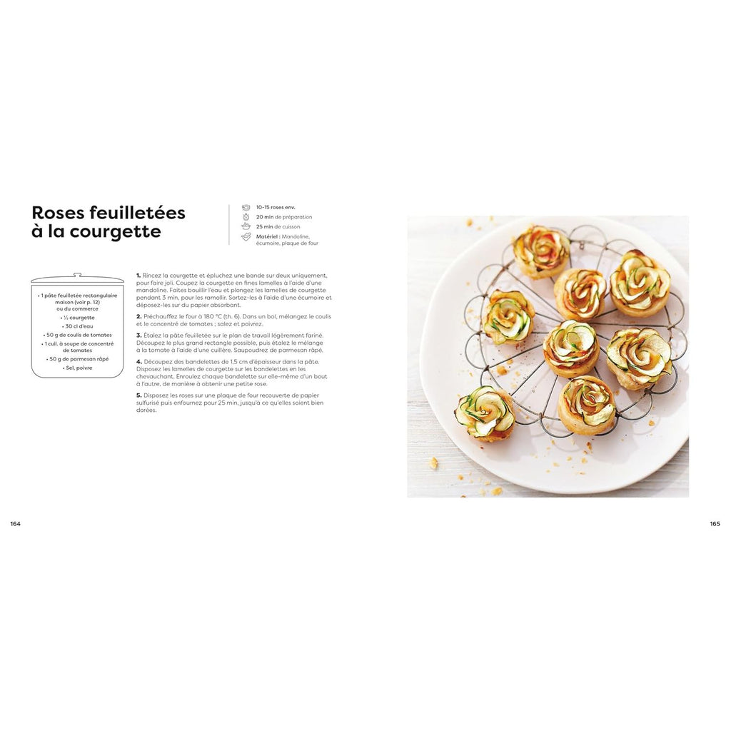 Tarte soleil à la ricotta et aux épinards, Tarte soleil au fromage frais, saumon et aneth, Tarte sapin gorgonzola, poire et noix, Tarte sapin cabécou et thym, Pizza roulée épinards et jambon de Parme, Mini-pizzas aux anchois, Focaccettes aux artichauts et olives, Bruschettas au chèvre, figues et thym citron, Feuilletés d'escargot en persillade...