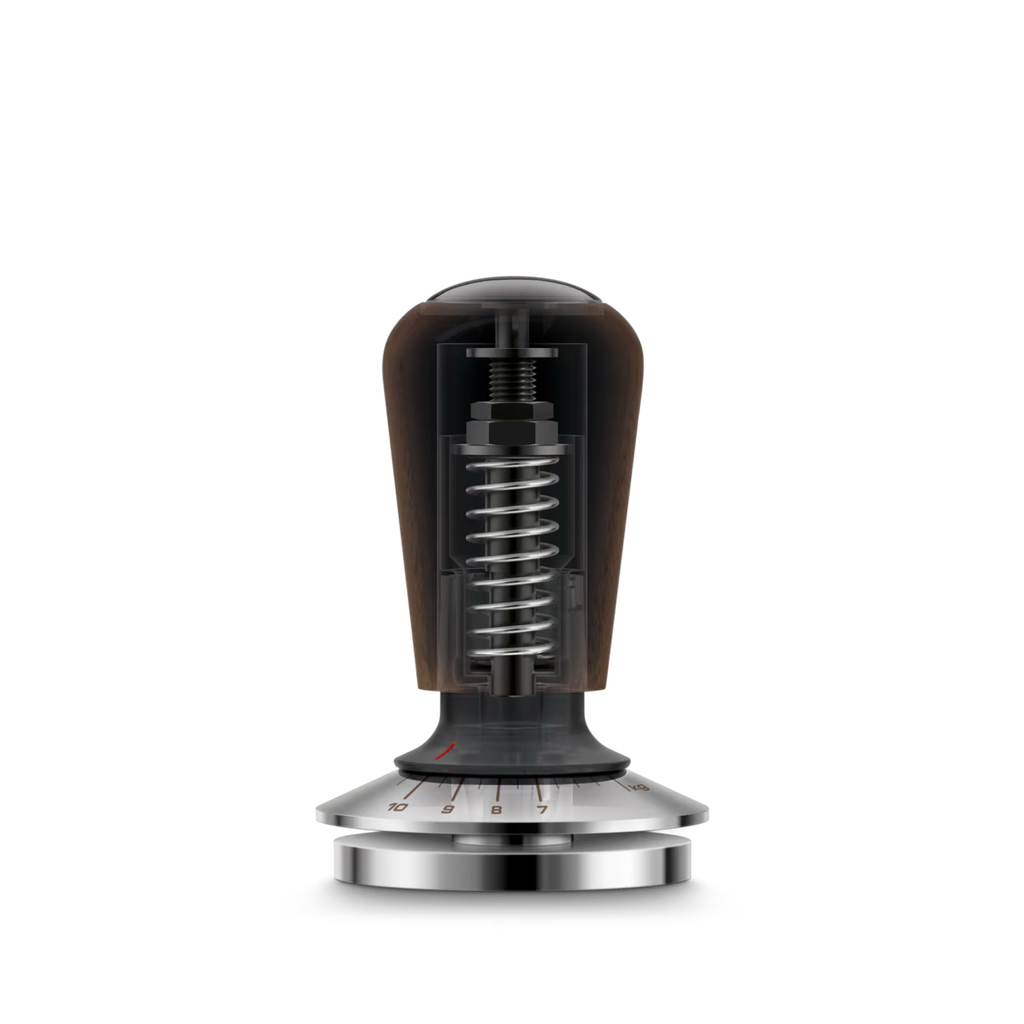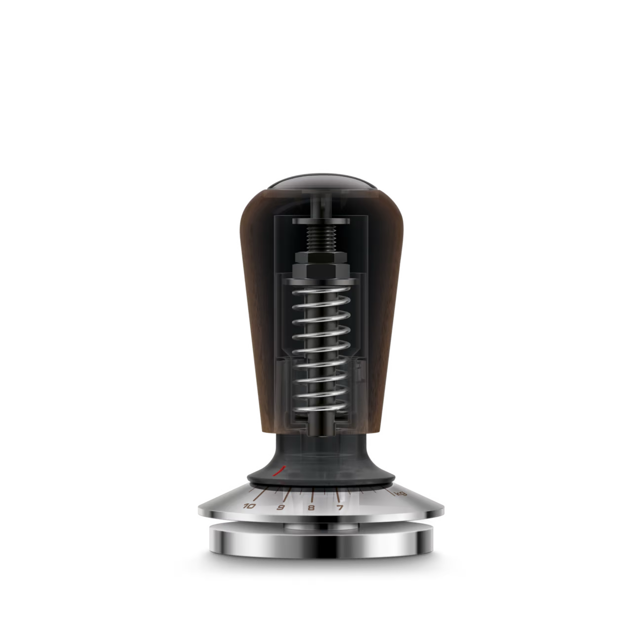 Le mécanisme à ressort fournit une pression uniforme allant de 15,4 à 22 lb. La jauge de force variable est dotée de graduations qui vous permettent de sélectionner la force de tassage que vous préférez pour la mouture.