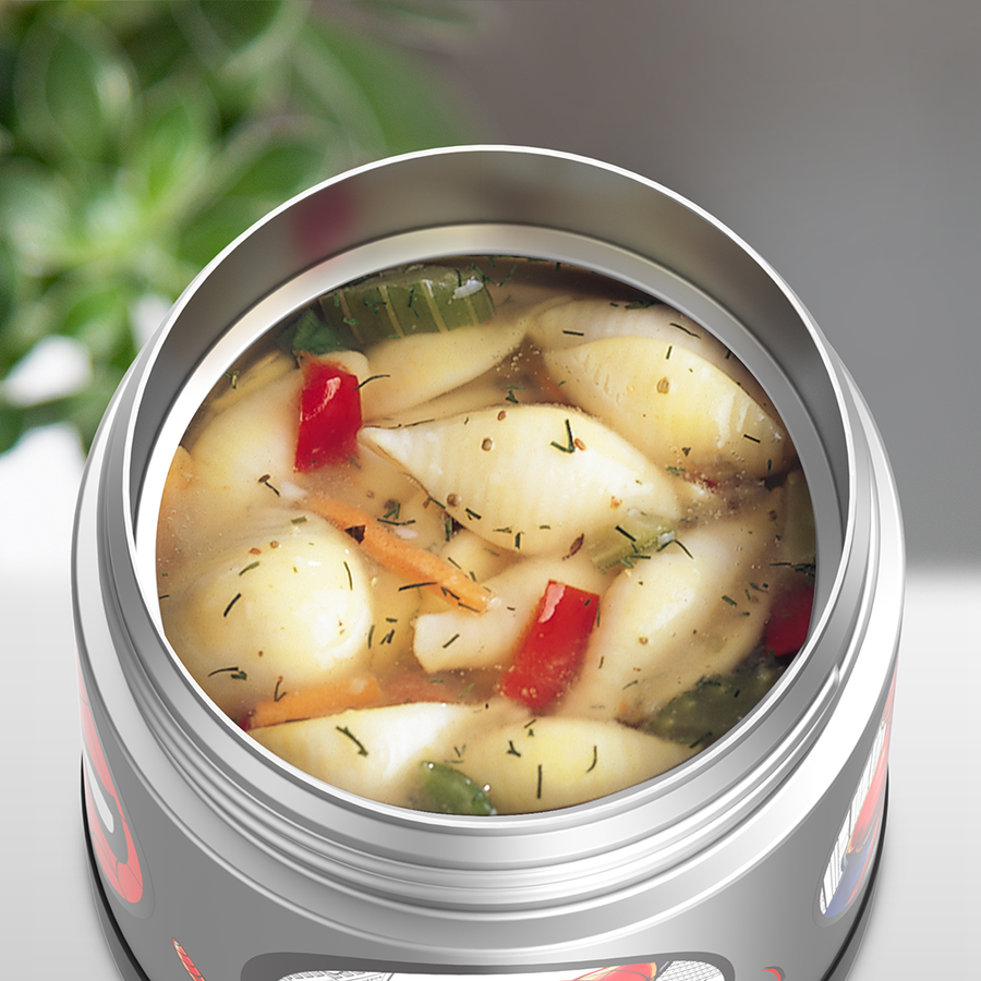 Le contenant alimentaire FUNtainer de 10 oz (290 ml) de la marque Thermos est isolé sous vide pour garder les aliments chauds au chaud et les aliments froids au froid, et puisqu'il est conçu pour les enfants, il est également coloré et amusant. Envoyez-les à l'école avec leur soupe préférée afin qu'ils puissent la déguster fraîche ou chaude à l'heure du déjeuner. S'il a envie d'une collation froide, accompagnez-la de yogourt et de baies, ou de pommes et de beurre de cacahuète. Le contenant alimentaire FUNtainer est léger et compact avec un couvercle à bouton-poussoir, il est donc facile à transporter et à ouvrir. Pour le nettoyer, vous pouvez mettre votre contenant alimentaire FUNtainer au lave-vaisselle ; cependant le lavage à la main est recommandé. Cuillère incluse.