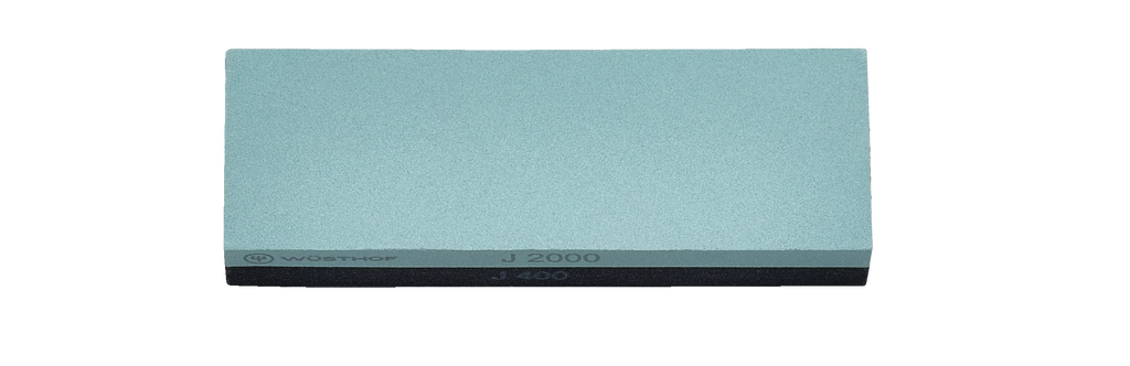 La pierre à aiguiser WÜSTHOF 400/2000 est composée d'une combinaison de différents grains abrasifs de haute qualité. Les pierres possèdent deux faces : une à grain fin et une à grain grossier. La face à grain grossier permet de lisser les irrégularités, tandis que la face à grain fin permet d'affûter et d'aiguiser votre couteau.