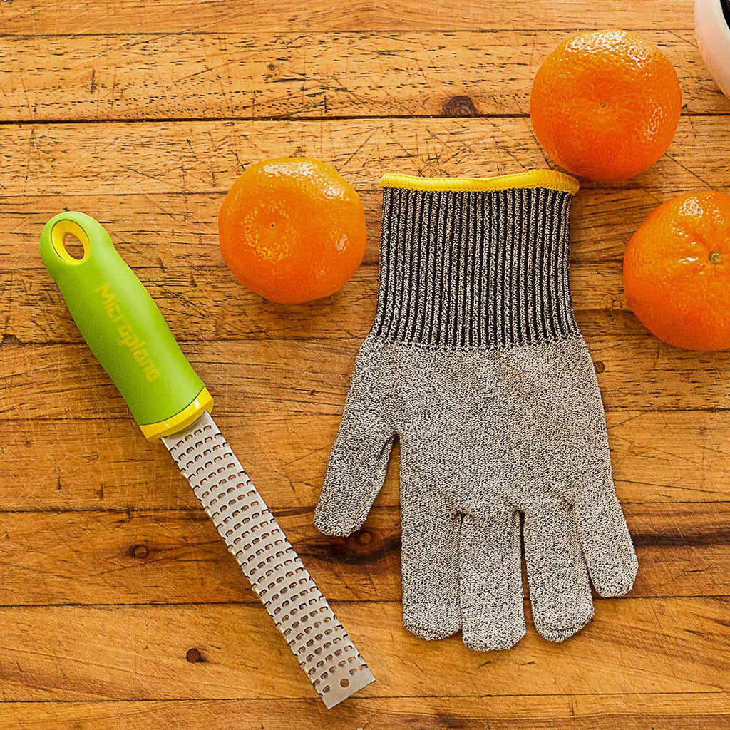Inspirez la créativité des jeunes chefs dans la cuisine avec ce nouvel ensemble de Microplane! Protégez les mains des petits assistants d'un contact accidentel avec les lames tranchantes de notre zester d'origine. Notre gant résistant aux coupures s'adapte à chaque main et est conforme à la FDA pour le contact alimentaire. Il est classé EN388 5 résistant aux coupures, répondant aux normes européennes et américaines. La petite râpe Premium Classic de style râpe est dotée d'une poignée douce au toucher qui est confortable à tenir et se sent en sécurité dans la main. Il est conçu avec des lames en acier inoxydable gravées, qui coupent sans effort les aliments durs et mous sans déchirer ni déchiqueter.